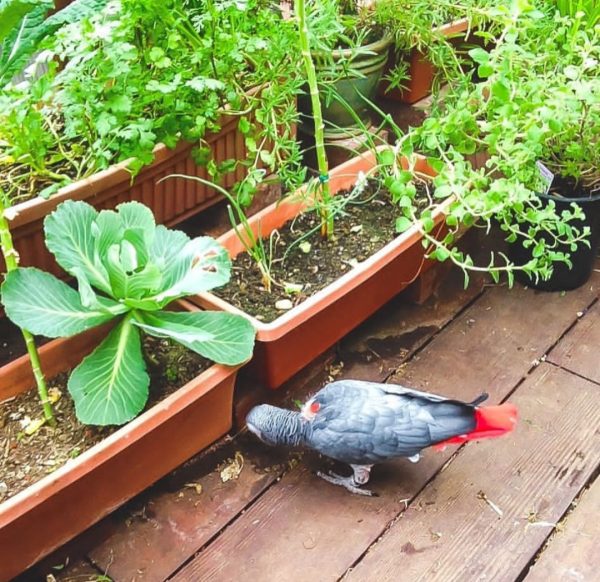At first glance, the African grey is a medium-sized, dusty-looking gray bird, almost pigeon-like — but further investigation reveals a bright red tail, intelligent orange eyes, and a stunning scalloped pattern to its plumage