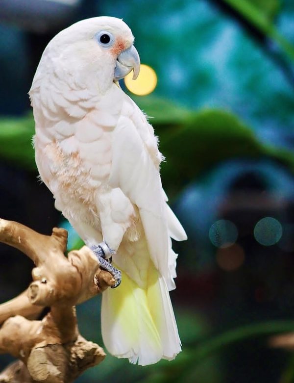 Known for their snowy white feathers, soft peach-colored blush on the face, and inquisitive dark eyes, Goffin Cockatoos make incredible lifelong companions. They are highly intelligent, easy to train, and love interacting with their owners – perfect for families or experienced bird lovers.