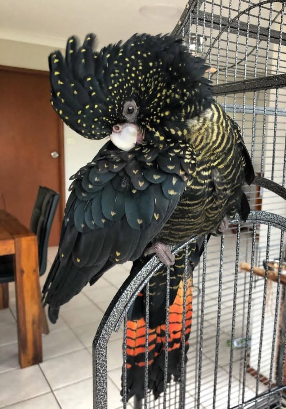 “Red Tail Black Cockatoo Parrots – Males and Females, 1 year 3 months old. Fully vaccinated and healthy, these exotic parrots are intelligent, friendly, and ideal for bird lovers and collectors seeking a striking addition to their aviary.”